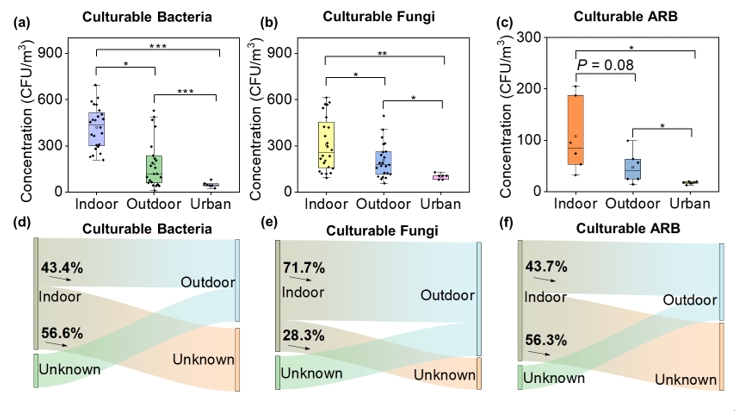 明确排放源:研究通过一系列证据证实了 WCFs 是城市空气中细菌、抗生素耐药菌和真菌的重要排放源。利用 SourceTracker2 分析方法估算,约 43.4% 的可培养细菌、71.7% 的真菌和 43.7% 的耐药细菌会从 WCFs 排放至大气中,并且室外总可吸入细菌中约 74% 来源于 WCFs 内部。研究发现不同类型的 WCFs 微生物浓度受多种因素影响,如菜市场 WCFs 由于处理的有机和易腐垃圾较多,为微生物生长提供了丰富的营养源,使得微生物浓度相对较高。同时,季节变化对微生物浓度也有一定影响,研究发现湿季的可培养细菌和真菌浓度略高于干季。
