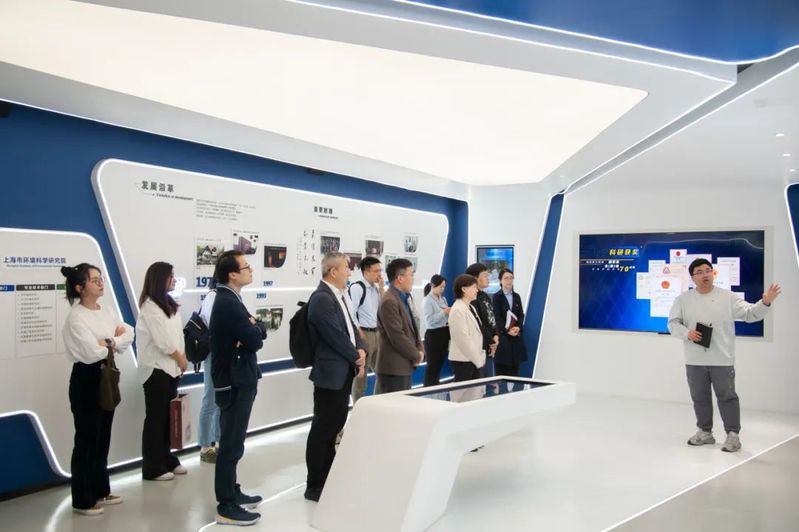 学习交流会前,一行人参观了市环科院展示厅,详细了解环科院建院历史和发展概况,并实地考察生态环境部城市大气复合污染成因与防治重点实验室、上海城市环境噪声控制工程技术研究中心、生态环境部新污染物环境健康影响评价重点实验室,了解环科院在大气污染防治技术研发、城市环境噪声控制、新污染物毒性筛查与风险评估等领域的科研进展与创新成果。