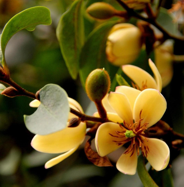 木兰科含笑属常绿灌木;叶革质,狭椭圆形或倒卵状椭圆形;含笑花可入药,去瘀生新,止咳,利尿,调经,常用于治疗月经不调,慢性支气管炎,前列腺炎、尿频等病症。