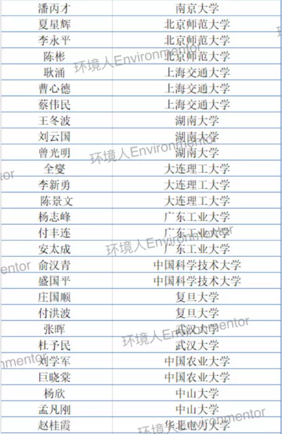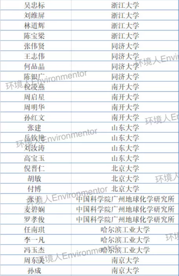 本次共有4023位学者入选,其中环境科学与工程学科97人入选,中国科学院18人名列榜首,其后依次为清华大学(9人)、浙江大学(8人)、同济大学(4人)、南开大学(4人)、山东大学(4人)、北京大学(3人)、哈尔滨工业大学(3人)、南京大学(3人)、北京师范大学(3人)、大连理工大学(3人)、上海交通大学(3人)、湖南大学(3人)、广东工业大学(3人)、中国科学技术大学(2人)、中山大学(2人)、笔趣阁 (2人)、武汉大学(2人)、中国农业大学(2人)、暨南大学(2人)、华北电力大学(2人)、广州大学(2人)、江苏大学(2人)、北京工业大学(1人)、江南大学(1人)、西安交通大学(1人)中国地质大学(武汉)(1人)、上海师范大学(1人)、中国环境科学研究院(1人)、广东省生态环境与土壤研究所(1人)。