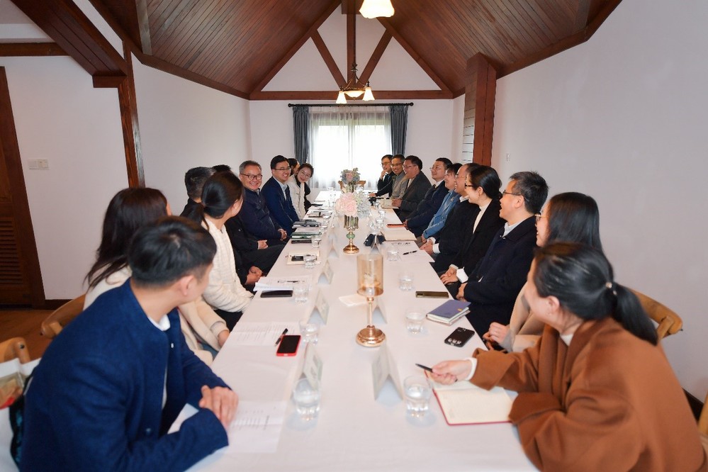 仪式后双方召开座谈会,就人才培养、项目对接、社会实践等领域进行了讨论交流。未来,环境系党委将深入贯彻落实党的二十大精神,通过党建共建充分发挥学科优势,多措并举,在生态文明、乡村振兴、经济转型、服务社会等方面与南桥镇开展党建共建、课程实践、田野调查、项目运行等。通过不断探索合作新模式,力争把乡村振兴做出实效,助力乡村振兴工作走深、走实;发挥“三线联动”优势,通过党建引领,把党的组织优势、政治优势,转化为帮扶社会主义新农村建设的新优势。