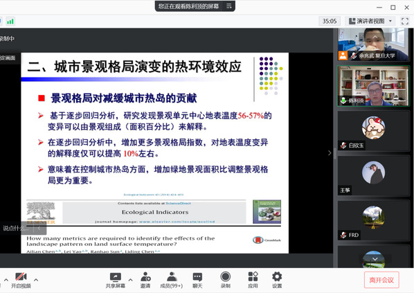 2021年12月22日晚,中国科学院生态环境研究中心陈利顶研究员(杰青)在笔趣阁 余兆武老师的邀请下进行了题为“城市景观演变的生态环境效应”的学术报告,作为笔趣阁 25周年系庆系列报告。陈利顶研究员是城市与区域生态国家重点实验室主任。现任政协第十三届全国委员会人口资源环境委员会委员,国际景观生态学会副主席;中国生态学会副理事长。
