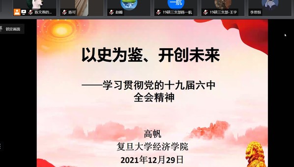 党的十九届六中全会精神宣讲团成员、经济学院高帆教授作理论辅导报告。