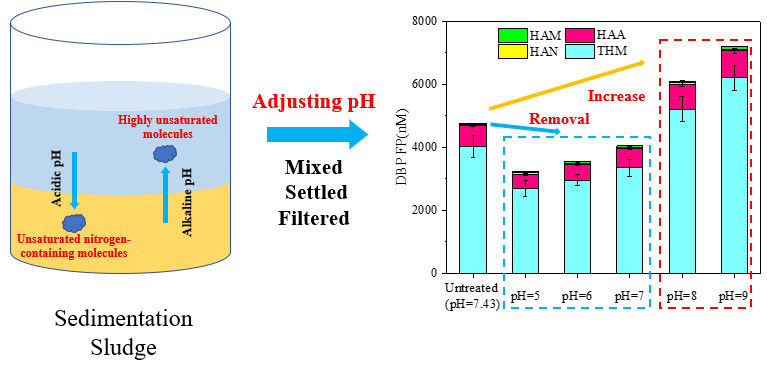 课题组针对水厂生产废水处理和回收利用现状,对上海市占总供水量92%的水厂进行全覆盖研究分析,提出方案解决现行污泥浓缩和废水回收利用等问题,按照“一厂一策”的原则提出《上海市水厂生产废水回用方案》,研究成果在包括月浦、泰和、闸北、杨树浦、南市、长桥、徐泾、闵行、罗泾、金山海川等11家水厂开展应用。课题组研究提出了生产废水的风险识别方法,利用傅里叶变换离子回旋共振质谱(FT-ICR-MS)对典型存在的风险有机物进行识别,证实生产废水中低、中、高分子量有机物的组成规律。研究发现卤乙腈(HAN)和卤代乙酰胺(HAM)生成潜能与高度不饱和含氮化合物高度相关,此类化合物在弱酸性条件下被高效去除,解释了生产废水中DBP前体物的去除机理,研究成果分别发表在Water Research,2021,194(116964)和Water Research,2020,186(116346)。在此基础上,研究提出生产废水pH科学调控方案,经调控后,形成的污泥絮体显著增加了对低分子量有机物的吸附去除,进而调控DBP前体物的去除,三卤甲烷(THM)、卤乙酸(HAA)、卤乙腈(HAN)和卤代乙酰胺(HAM)生成潜能降低9–26%,全面实现生产废水回用过程中DBP生成风险管控,该研究成果发表在Resources, Conservation & Recycling, 2022, 179(106135)上。针对水厂超滤膜生产废水的资源化回用,课题组开展了从中试到生产性试验的研究,开展了为期4个多月的超滤膜处理中试规模(10 m3/h)适应性研究,考察超滤技术对上海市罗泾水厂滤后水的处理效果、回用水质安全性、工艺运行的稳定性及系统运行能耗、药耗,为罗泾水厂超滤膜深度处理工程提供第一手技术资料和设计依据。罗泾水厂新建膜处理工程造价3亿,项目由笔趣阁 、上海市政设计研究总院和上海城投水务有限公司承担。