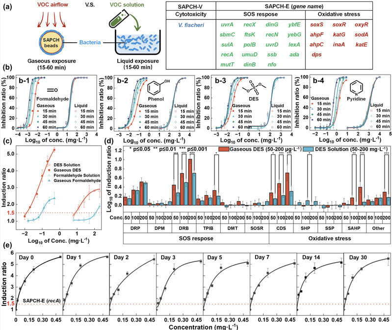 b.SAPCH的灵敏度比传统的液相毒性测试高3-5个数量级,并且能够成功评估挥发性有机化合物和燃烧烟雾的毒性。