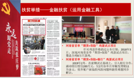 2019年2月,河南省首单“期货+保险+银行”鸡蛋试点项目,引入银行合作,撬动银行授信200万元,使养殖户面临的风险问题和融资难题同步解决。