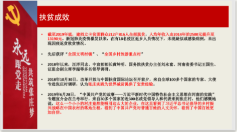 听了晓楠书记的讲座,我对驻村书记这样一个职位有了新的认识。今年是全面建设小康之年,也是脱贫攻坚战的完成之年。而所有的脱贫成果背后都凝结着像晓楠书记这样无私奉献的党员的努力。无论是开办本地特色产业工厂,还是带领村民养孔雀,运用期货卖鸡蛋,这些创新之举为脱贫事业注入了新活力,更做到了授之以渔,为乡村的长久发展提供了保障。