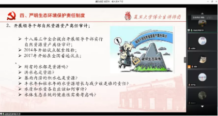 团校邀请了博士讲师团的胡彪老师作为主讲人。为帮助同学们更好地理解习近平生态文明思想,领会环境领域的国家治理体系和治理能力现代化,胡彪老师从环境管理专业的角度,介绍了四个议题: