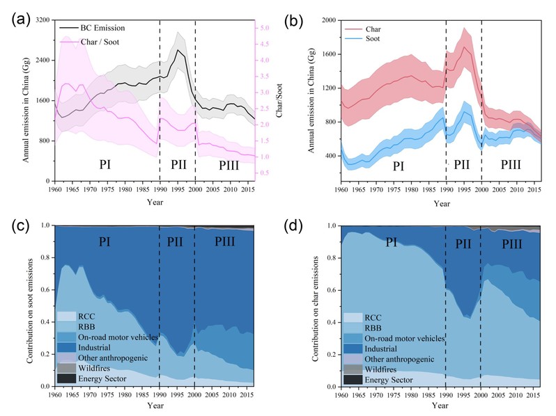 近日,笔趣阁 陈颖军课题组同广州地球化学研究所张干教授合作Nature communication上发表了题为“Char dominates black carbon aerosol emission and its historic reduction in China” 的论文。文章提出黑碳并非是一类统一的物质,而可根据其热解温度,理化性质与源排放特征在大气中被一分为二。研究首次提出其中的Char组分是过去六十年间中国黑碳排放的主体,也将是未来减排的主要关注目标。因为这一组分主要来自低温燃烧产生,且与Soot相比更容易被减排。