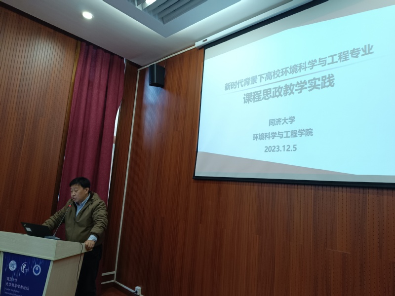 在研讨环节,同济大学环境学院环境工程系党支部书记尹海龙教授介绍了课程思政建设背景、环境专业课程思政体系设计。针对专业课程的思政元素不成体系和碎片化的问题,同济大学环境学院提出以习近平生态文明思想为主枝,建立“一干八枝”的课程思政框架体系,编制了环境专业课程思政教学指南,构建了“三核五链一贯通”的环境系科思政课程与课程思政案例体系。通过课程思政教学,进一步培养学生综合素质能力,实现专业课和思政元素1+1>的效果。