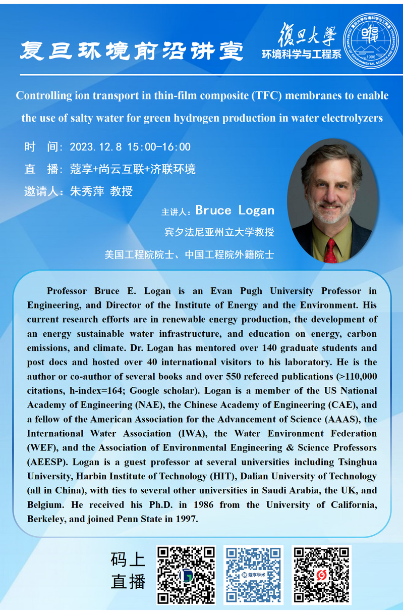 【复旦笔趣阁 讲堂】Controlling ion transport in thin-film composite (TFC) membranes to enable the use of salty water for green hydrogen production in water electrolyzers