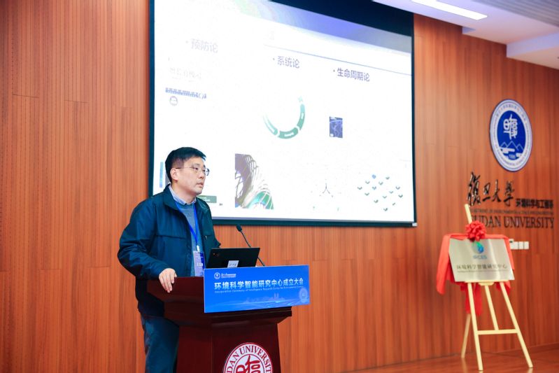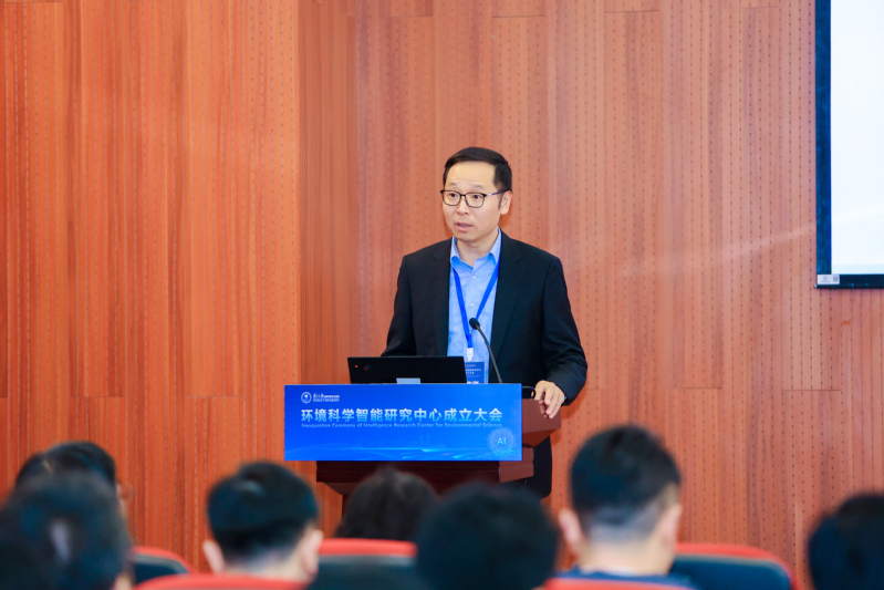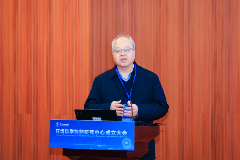 中国科学技术大学俞汉青院士在致辞中指出,人工智能技术正在深刻改变环境科学的研究方法和技术路径,从环境监测到污染治理,从生态修复到气候变化应对,人工智能的应用正呈现出多元化、深层次的特点。他期待中心能够成为环境科学与人工智能交叉融合的重要平台,培养创新人才,产出原创成果。