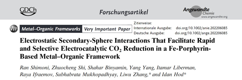 近期,笔趣阁 张立武课题组与以色列本古里安大学IdanHod课题组合作开展了通过调节靠近催化活性位点的静电相互作用来促进电化学CO2还原效率和选择性。探索了基于铁卟啉(Hemin)改性的Zr-BTB,通过连接一个阳离子官能团(3-羧丙基)三甲基铵(TMA)到铁卟啉活性位点附近来调节静电相互作用。发现TMA在催化过程中对表面结合的CO中间体施加了静电稳定作用,从而大大提高了CO2到CO的转化率和选择性。通过改变TMA的表面密度和电解质的离子强度,进而改变静电相互作用的程度。以上设计系统地调整了电催化选择性,几乎达到了100%的CO2转化为CO。