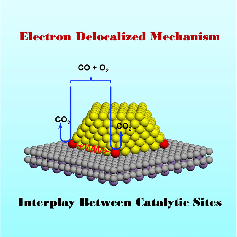 控制挥发性有机物、一氧化碳和氮氧化物等大气污染物的排放是改善大气环境品质的有效方法,其中源头控制这些污染物发挥着重要的作用。环境催化法具有效率高、能耗低、二次污染少等优点被广泛应用于大气污染控制的环保领域,其中开发高效催化剂是关键,明晰反应机理是前提。在非均相环境催化反应中,大多数反应机理为基于单个活性位上的定域反应机理。近日,我系唐幸福教授课题组提出了一种环境催化的新机理,即电子离域机理,如图1所示。电子离域机理概念的提出为开发高效环境催化剂提供的科学依据,有利于提高大气污染物排放的控制效率。相关的研究成果以题为 “Interplay between remote single-atom active sites triggers speedy catalytic oxidation”,发表于Cell出版社Chem期刊:。