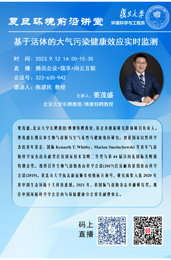 【复旦笔趣阁 讲堂】基于活体的大气污染健康效应实时监测