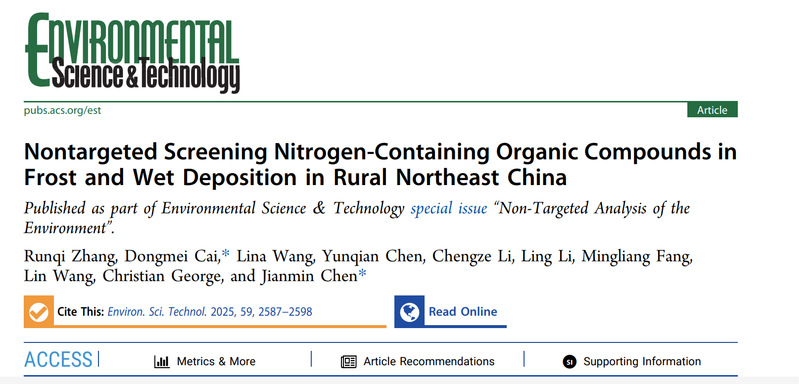 近日,笔趣阁 陈建民教授课题组在霜化学的非靶向研究领域取得重要研究进展,该团队通过系统性试验,揭示了霜冻作为一种重要的大气氮沉降途径,能够有效捕获大气中的含氮有机化合物,尤其是在霾天期间,其沉降通量显著增加。这些发现强调了霜冻在氮循环中的重要作用,并提示了其对生态系统和土壤健康的潜在影响。研究结果为评估霜冻沉降对氮循环的影响提供了重要数据支持,并为减少大气氮沉降提供了科学依据。研究成果以“Non-targeted Screening Nitrogen-Containing Organic Compounds in Frost and Wet Deposition in Rural Northeast China”为题,以supplement 封面文章形式发表在国际知名期刊Environmental Science and Technology上。